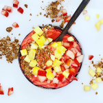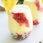 Pineapple, coconut, strawberry, coconut milk, Honey.