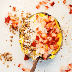 Strawberry, banana, coconut milk, honey, agave.